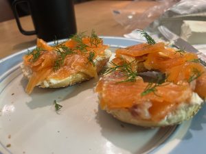 Served with capers is the Danish style. Red onion and cream cheese if you prefer.